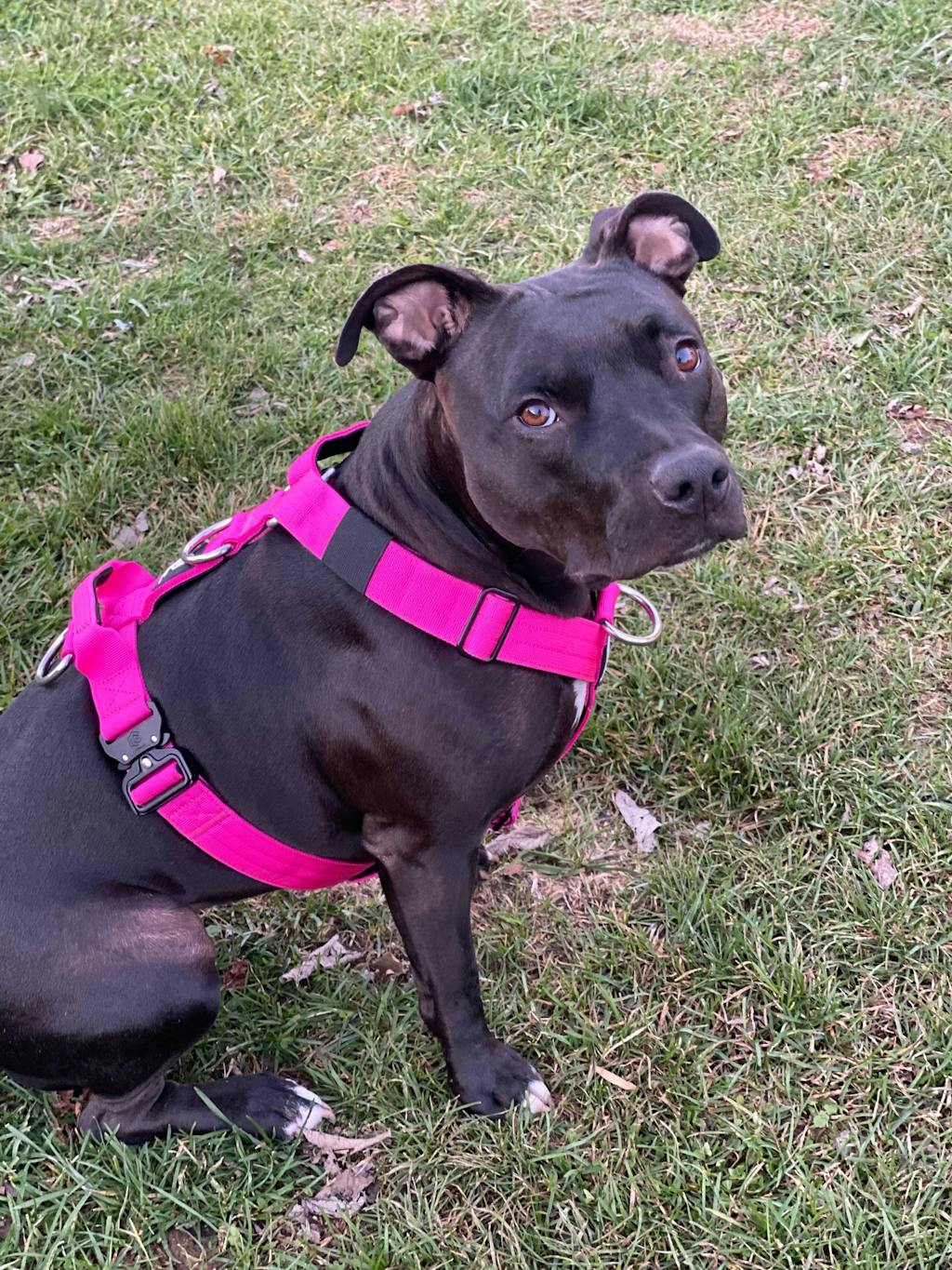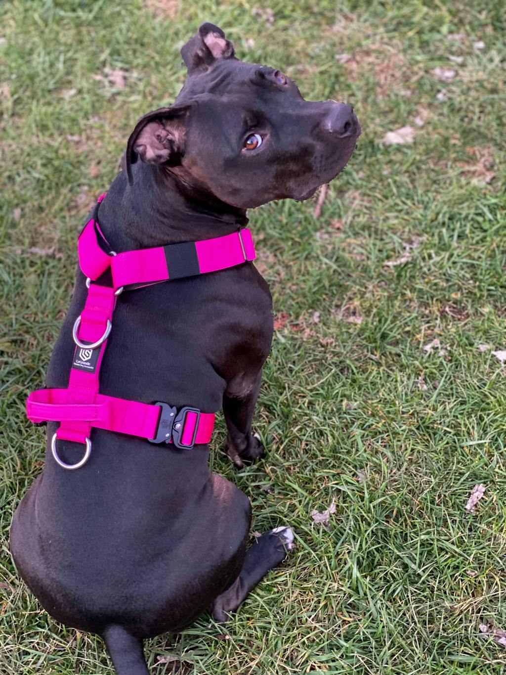 I love this harness. We use it literally every single day! I love the multiple attachment options. The back clip is perfect for running and her long line, while the middle clip is great for short leash walks. I don’t use the front clip, however it’s a great no pull option for some people!